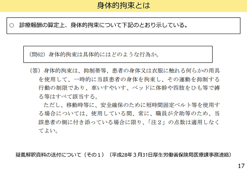 身体的拘束、「0%の施設等の調査を」 ── 井川副会長、入院外来分科会で