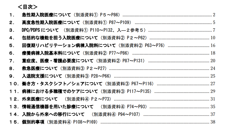 厚労省は同日の分科会に「入院・外来医療等の調査・評価分科会におけるこれまでの検討状況について検討結果(中間とりまとめ)(案)」を提示。「急性期入院医療」など15項目のテーマについて、令和6年度調査の主な結果とともに、同分科会で出された意見などを記載した。