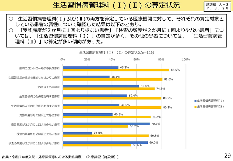 したがって、こういうことを含めて、生活習慣病管理料の中に入っているということ。「医療資源投入量」という話があったが、検査をしたから良い管理をしているというわけではない。しかも、それは疾患によって違っているということをご理解いただきたい。