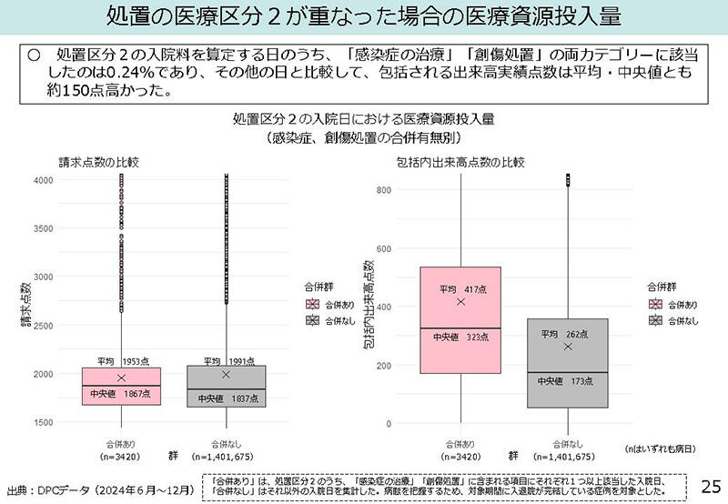 次に、2つ目の論点(処置区分2のうち、異なる治療を行う病態が重複した場合に医療資源投入量が増加すること)について。