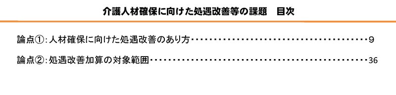 厚労省が同日の分科会に示した「介護人材確保に向けた処遇改善等の課題」では、人材確保に向けた処遇改善のあり方(論点①)について、「介護分野の職員の他職種と遜色のない処遇改善に向けて、どのような観点から検討していくべきか」などを挙げ、委員の意見を聴いた。